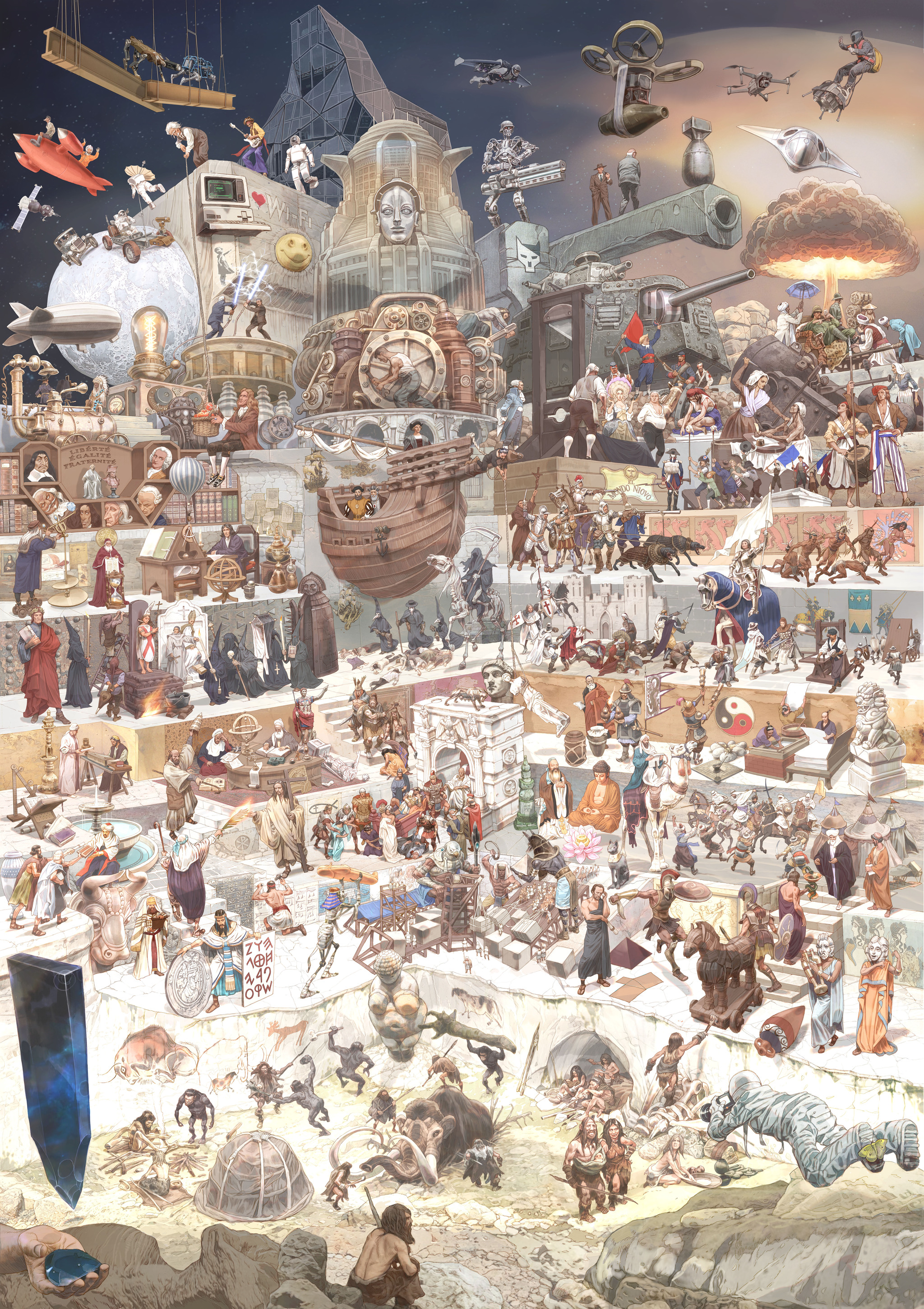 Всем привет. Давно не выкладывал на Pikabu никаких своих работ, как-то забил на это дело. Но вот решил понемногу наверстать упущенные возможности. Начать хочу с иллюстрации, которую сделал для постера имеющего целью раскрутку некоего книжного издания. Точно не могу сказать, что за книга и кем выпускалась - ориентировочно должна была быть в сентябре её публикация. Мне как-то эта вся информация не сильно важна. Заказали постер - сделал, отвалил. Повозиться с ним пришлось около двух месяцев - слишком многодетальная композиция. Довольно трудоёмкая работа. Но в целом все остались удовлетворены: и я и заказчик. Добавлю, что рисовалось это дело сначала традиционными материалами, а после дорабатывалось в цифре. Как говорится: смешанная техника. Надеюсь здешней аудитории будет интересно поразглядывать.