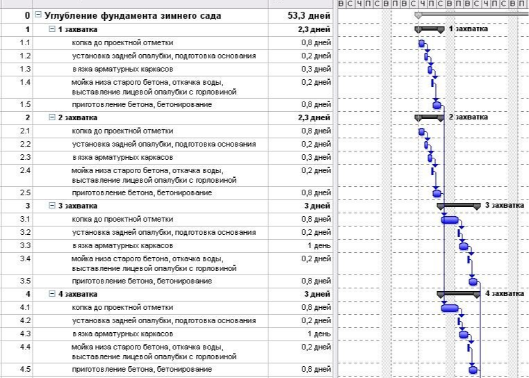 План работ по заглублению фундамента и устройству подвала можно представить в следующем виде: