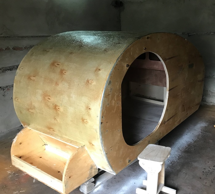 В таком виде жилой модуль уже не боится ни влаги, ни царапин веток и тд... И что немаловажно, очень легко чинится. Достаточно иметь с собой баночку гелькоута и отвердителя к нему. Так же, по истечении времени можно легко обновить покрытие. Самой главной отличительной чертой наших модулей - абсолютно бесшовная конструкция. Ни одного стыка. Освежу для вас основные моменты сборки.