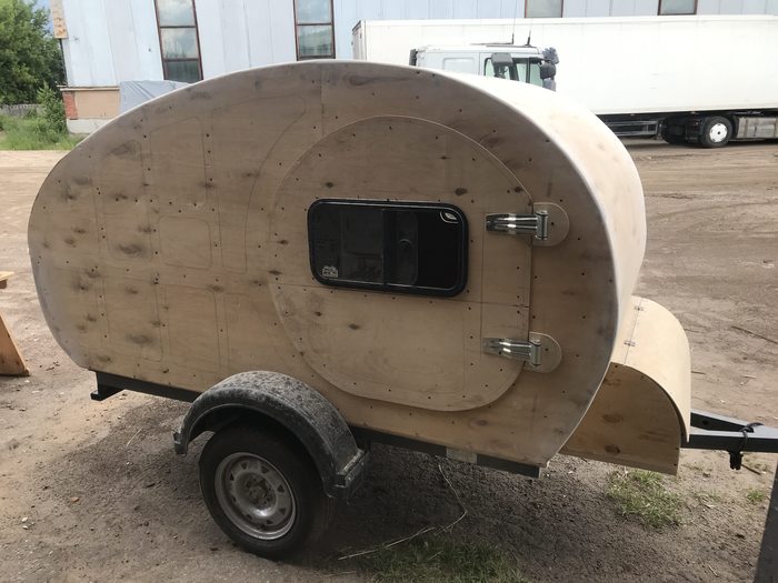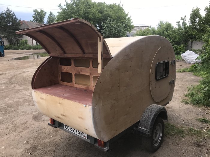 Думаю рассказывать что такое прицеп капля особо нет необходимости. В трех словах это кровать на колесах с кухонным блоком сзади. Плюсы таковы - всегда сухая и ровная кровать, освещение, тепло. А сзади все готово что бы приготовить еду на скору руку. Там будет раковина и газовая плитка. Очень интересная вещь. Для молодой пары провести романтические выходные - самое то! А учитывая ее небольшой вес и высокий клиренс прицепа, можно заехать очень далеко от посторонних глаз)).