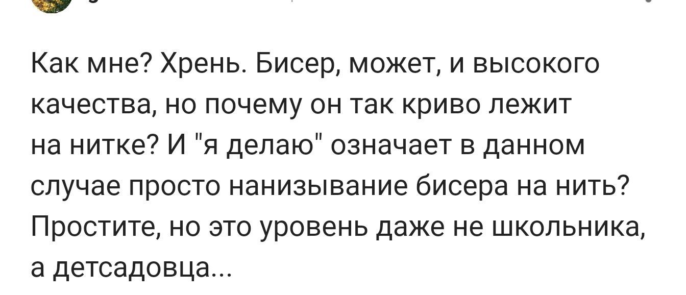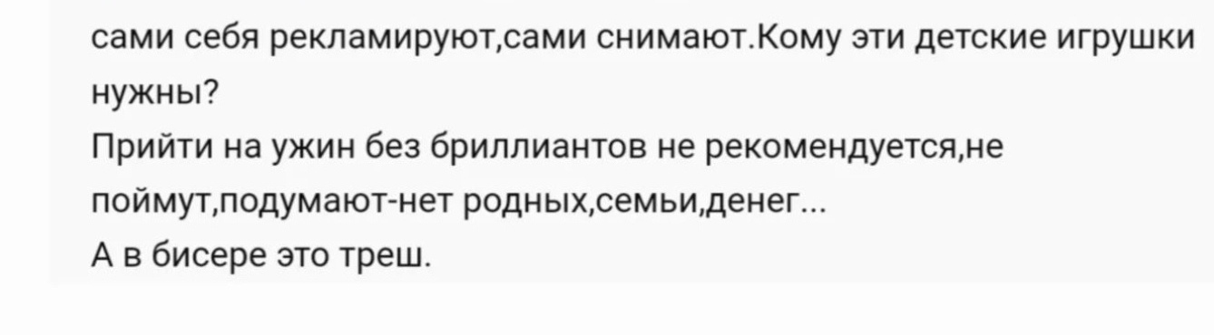 Завидую детсадовцам, которым родители покупают ювелирный бисер 5 тыщ за 5 грамм. Мне в детстве приходилось по талонам сахар ждать по 30 минут...