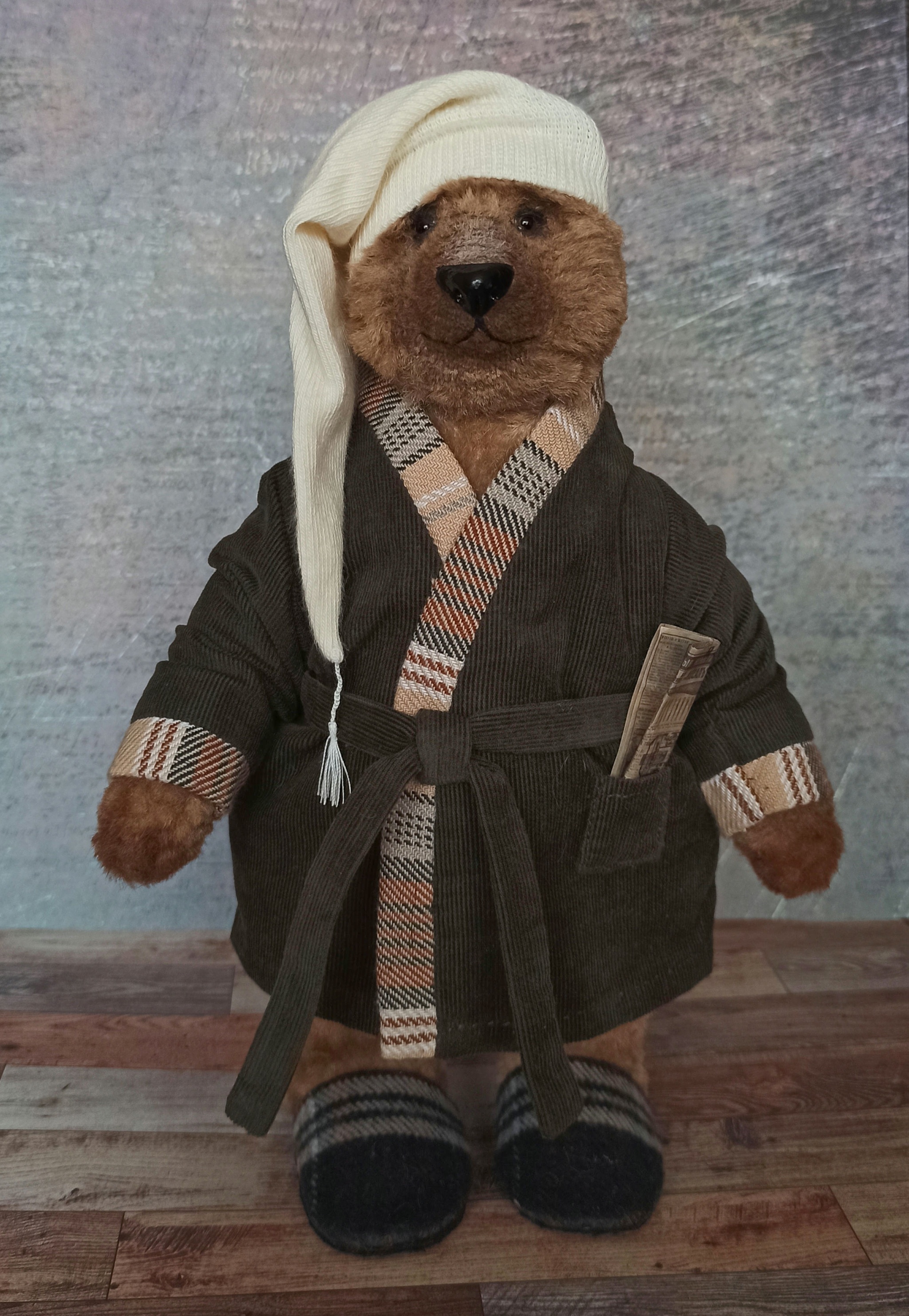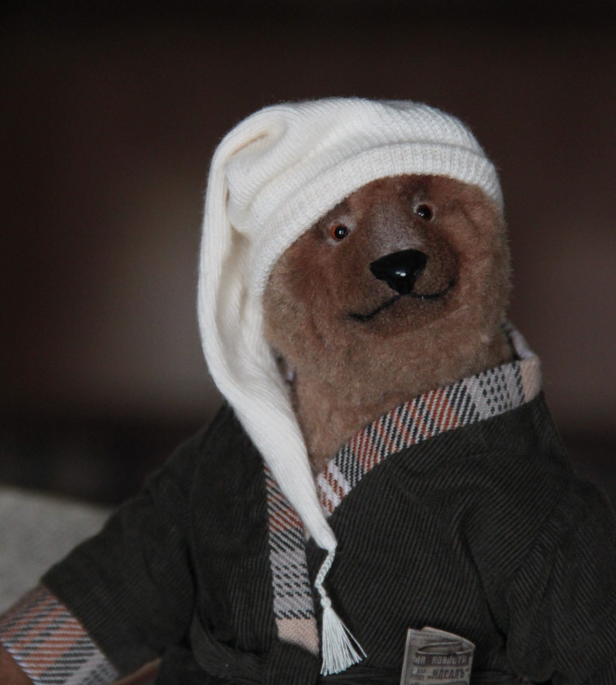Знакомьтесь - медвежий барин)) Плюшевая шуба, велюровый халат, трикотажный колпак, лепной нос. Внутри опилки и гранулят, тонировка маслом.