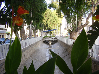 5 января у нас на севере Израиля начались сильные дожди. 8-го января, в день выписки моего папы из больницы, небеса разверзлись прямо над моим городком Нагария! Дело в том, что вдоль центральной улицы моего городка протекает маленькая речка, втекающая в море. Речка давно уже огорожена каменными берегами и в нескольких местах через нее переброшены каменные мостики со скамеечками и вазонами с цветами. Летом речка почти пересыхаем, а зимой наполняется водой из горных ручьев. C двух сторон вдоль речки лет 50 назад были посажены кипарисы, которые сейчас превратились в огромные деревья. Благодаря всему этому, центральная улица выглядит необычно и романтично.