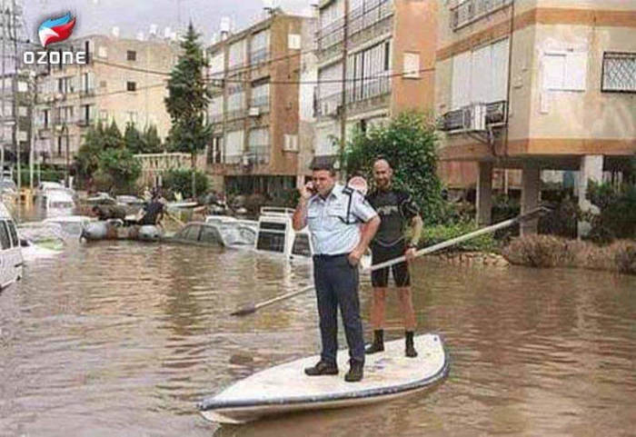 Во вторую половину дня в город была вызвана армейская техника для спасения и перевозки людей застрявших на островках суши, на работе и в школах.