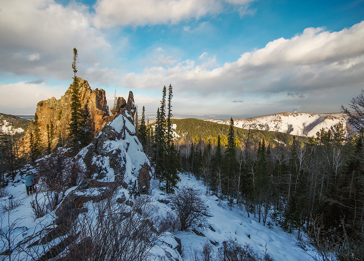 С вершины скалы открываются чудные виды на сибирскую тайгу и скалы.