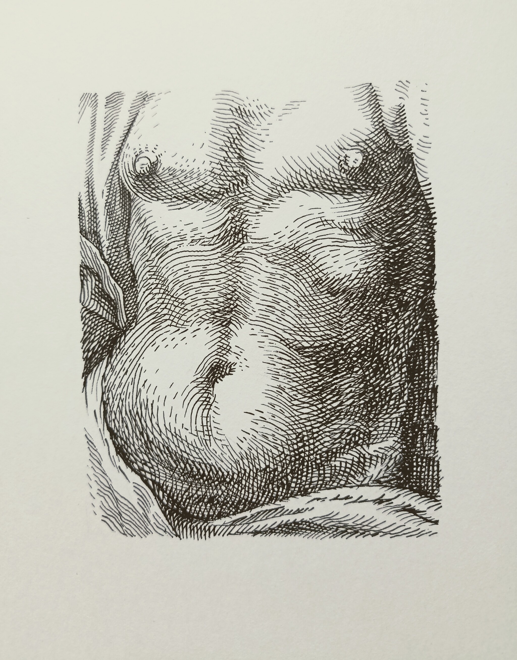 Конечно нужно понимать, что в оригинале были гравюры. Но я не столь серьезно настроена, чтобы у меня завелись металлические пластинки, кислота, офортный станок и вот это всё. Может когда-нибудь потом и это случится. Но пока просто линер.