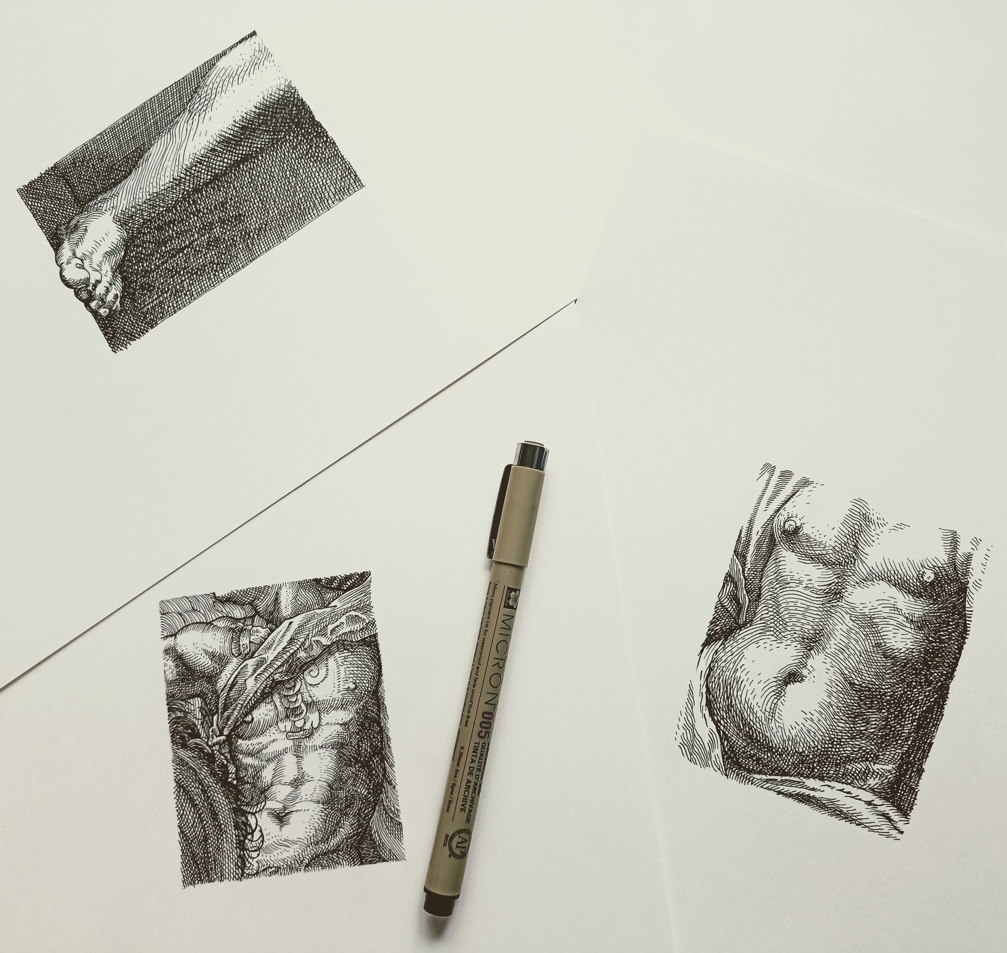 С определенной периодичностью в интернетах встречаются посты с заголовками в духе "штриховка старых мастеров". Почему бы не вооружиться линером и не сесть копировать фрагменты на глазок.