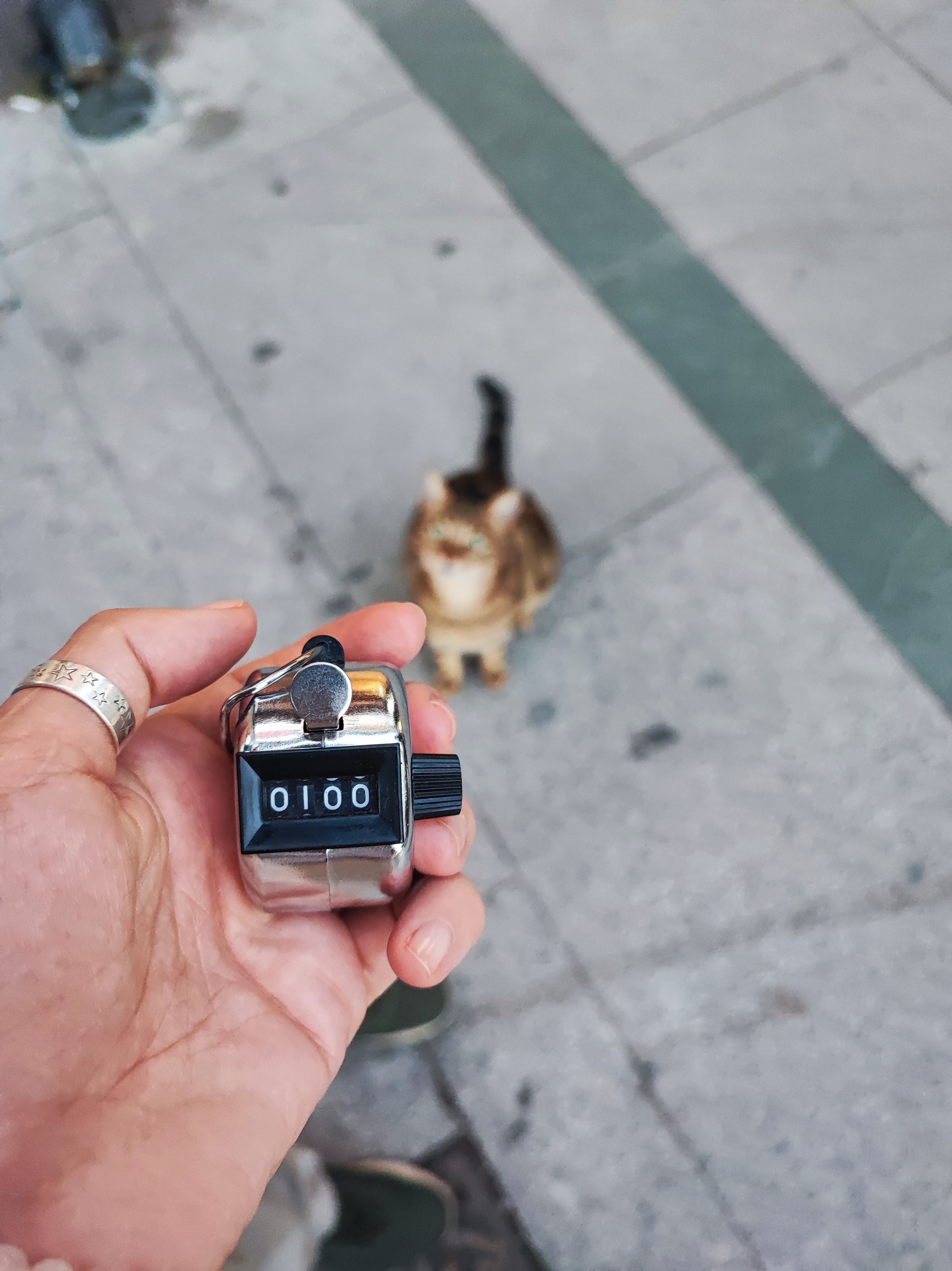 С Мирценаллом мы давно читаем друг друга и моя поездка в Стамбул не могла обойтись без проверки его подсчётов. По этому случаю с озона был заказан измерительный прибор, шагомер в часах заряжен и готов к работе, а котики.. они просто там живут.
