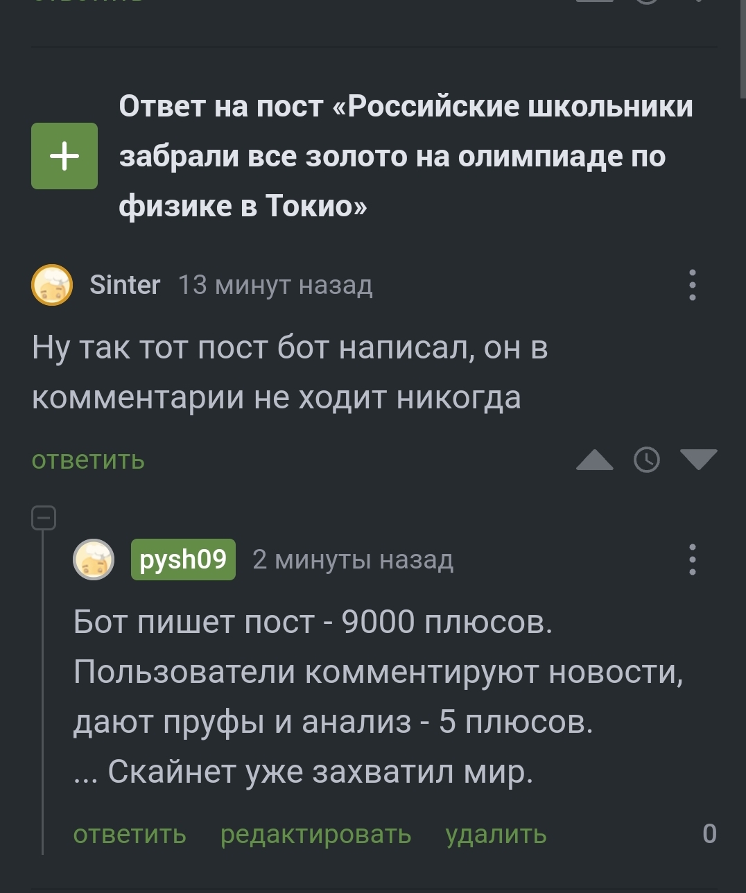 4 pysh09 Юмор Повторяй за мной: Генезис - это Скайнет 2 года назад [моё] Грустный юмор Комментарии на Пикабу Юмор Ирония Сарказм Скриншот Ещё 0
