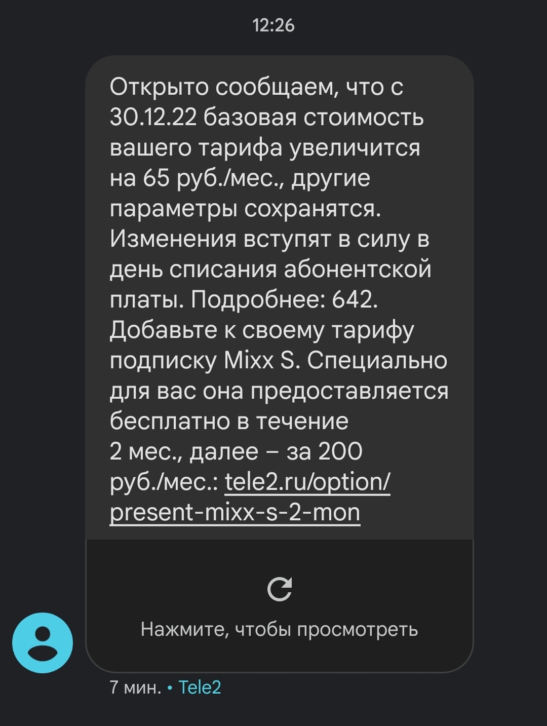 Повышение цены на тариф от Теле2