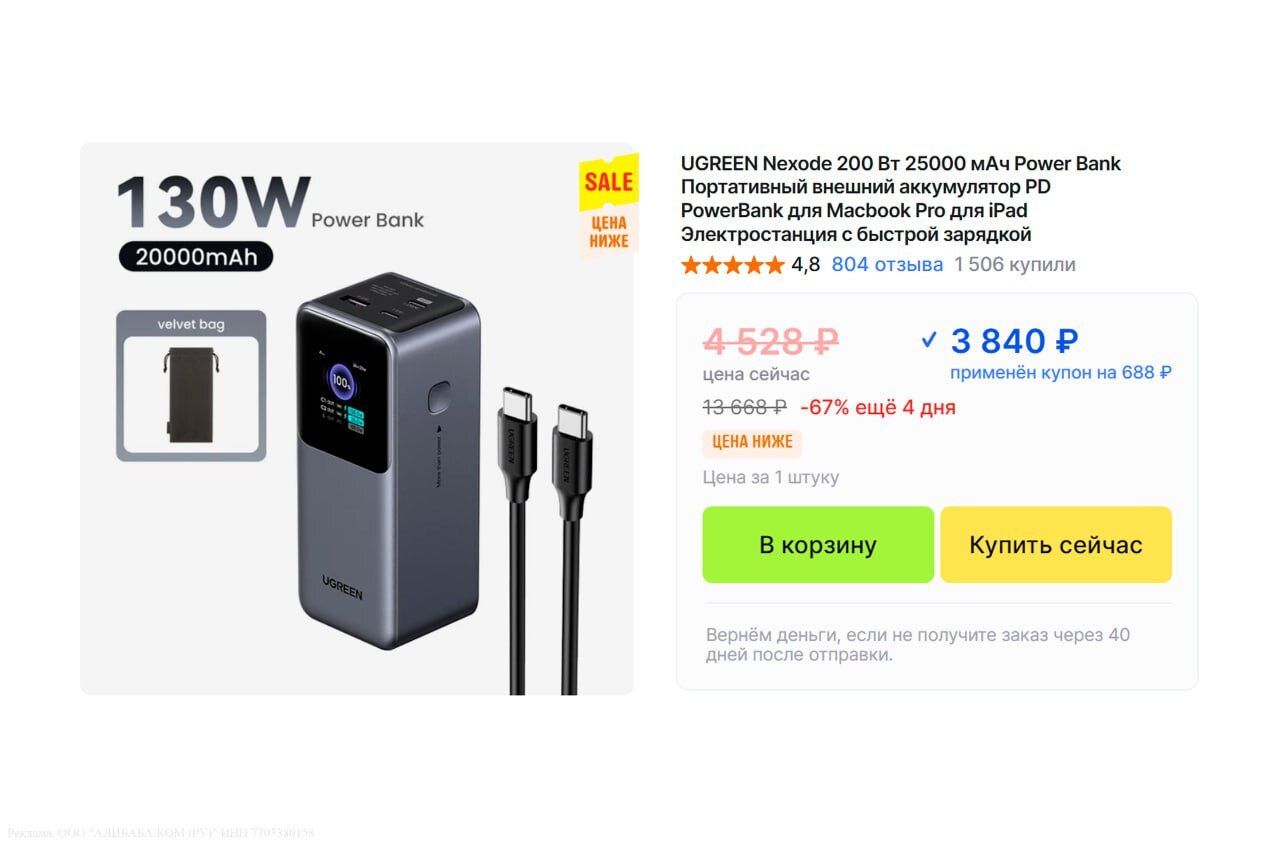 autopicabu Посылочная PowerBank UGREEN Nexode (130 Вт / 20000 мАч) 5 месяцев назад Заказать товар на АлиЭкспресс Powerbank AliExpress Товары Скриншот Ещё 0