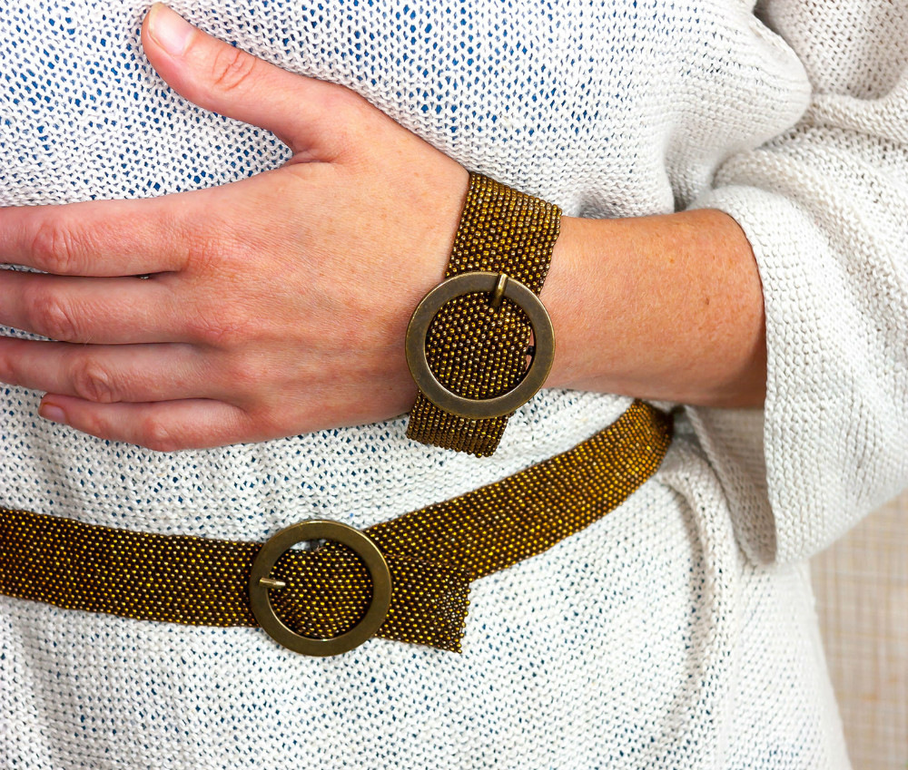 Прелесть этого комплекта в том, что можно совместить пояс и браслет и получится ремень на бёдра.