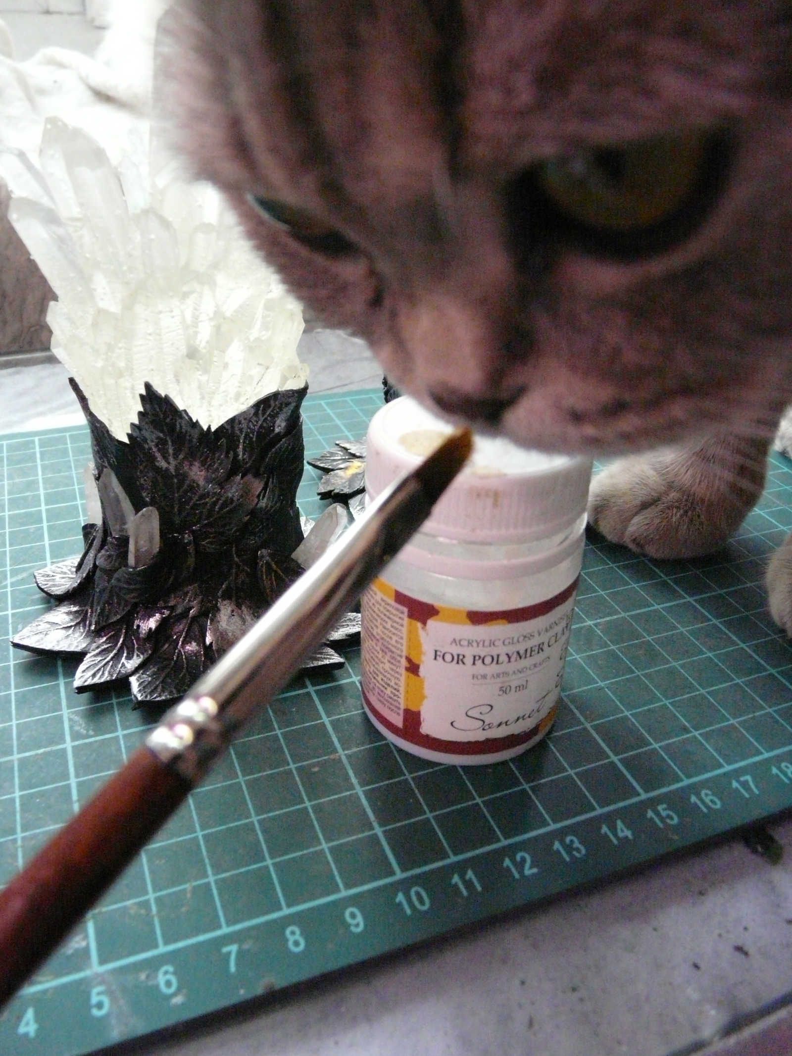 После того, как друза готова и вытащена из формы, берм полимерную глину, делаем из нее основание для светильника и декор. Нам нравится делать декор из листьев. Подробно процесс изготовления листьев из полимерной глины описан вот в этом нашем мастер-классе: http://pikabu.ru/story/poyetapnyiy_protsess_dekorirovaniya_q...
