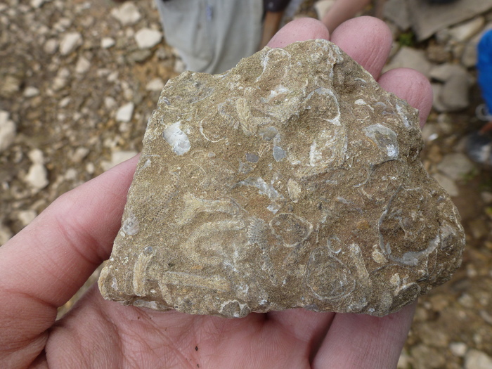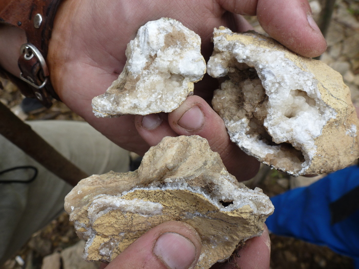 Даже нашлась одна жеода с кристаллами - мелкими и прозрачными, бесцветными, но восторга-то! Кварцу здесь взяться неоткуда вроде как, так что буду считать, что эта была жеода с кальцитом.