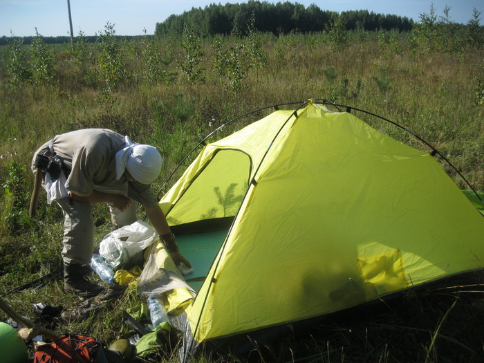 Вышли из леса мы уже совсем даже не в сумерках - неправильно это, конечно, ставить палатки затемно, но ставится в лесу было негде, а терять вчера около 15 км хода и ночевать на монашеском кладбище - сомнительное развлечение.
