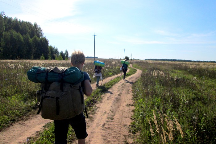 Как именно это произошло не помню, но... надо же было брату так ювелирно скручивать коврик-каремат, что кружка была изящно сбита самым уголком коврика. Всё, воды больше не осталось ни капли. А ведь все четверо - знатные вятские водохлёбы, помешанные на чае и кофе, вокруг разгорается летнее пекло, сколько нам осталось до Елькино ходьбы по полевым дорогам без намёка на тень после вчерашнего сумрачного забега совсем неясно. Катастрофа! Предвидим, как в Елькино дойдут четыре иссушенные мумии и жадно выпьют все местные колодцы - по 40 ведёр на душу, как Кощей из старых сказок.
