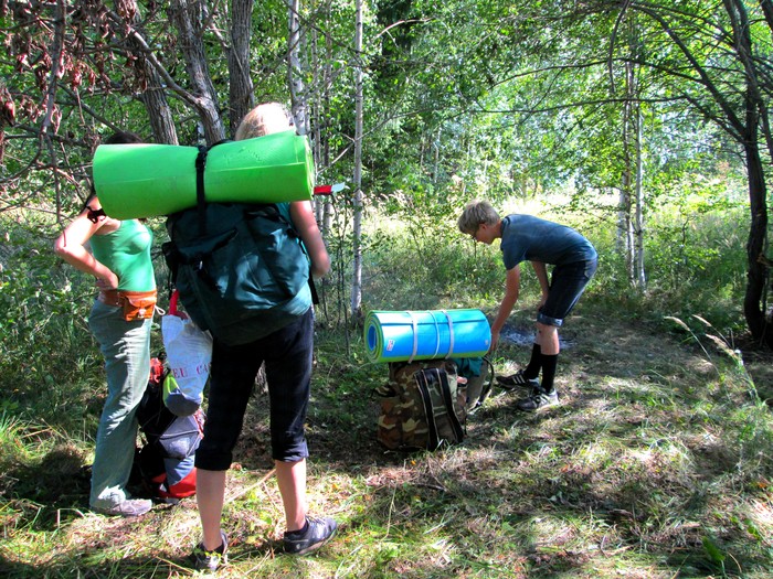 Что ж, место найдено, природоведческий восторг испытан, юным натуралистам пора перекусить и выдвигаться далее, ведь время начинает двигаться к вечеру, а нам ещё надо прилично пройти и найти место для стоянки. Двигаемся примерно на эту гору: