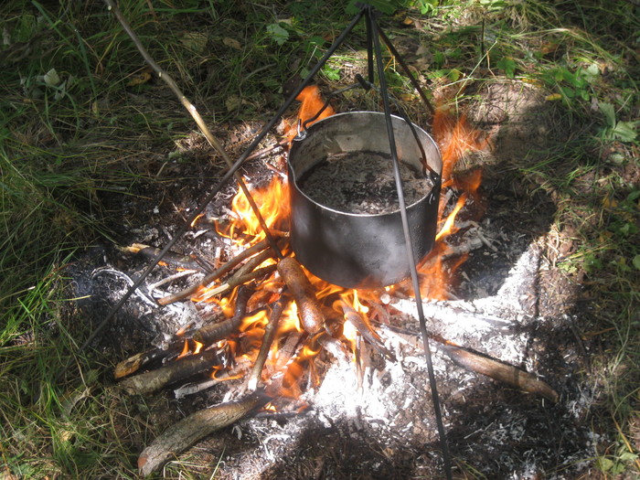 Воды осталось совсем минимум и решили на ней традиционно сварить своего походного кофе - там всего-то на кружечку и оставалось. Поставили горелку, кто-то один из нас заварил, остальные стали собирать барахло.. Точно помню, что на горелку варящим было явно обращено всеобщее внимание, чтобы её не опрокинуть - и пожарно надо быть ответственным перед природой, да и вода последняя...