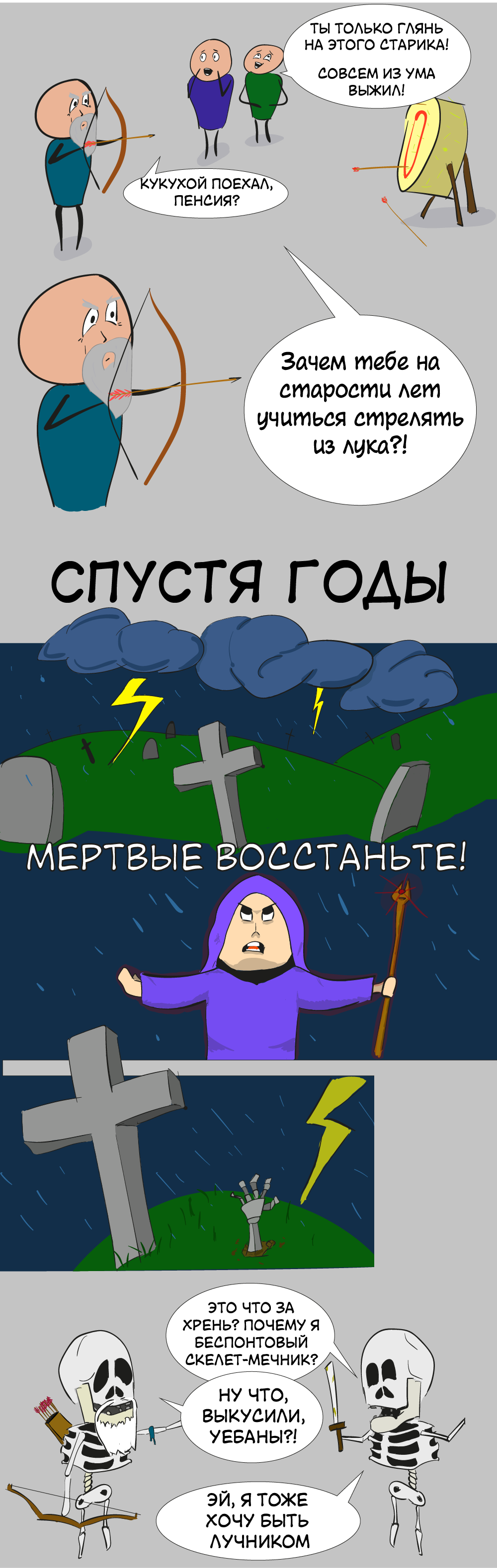 1747 barin042 Поздняя учеба 6 лет назад 10-летие Пикабу - неплохой повод вернуться и опять выкладывать хреновые комиксы с баянистыми шутками! [моё] Комиксы Лучники Учеба Длиннопост