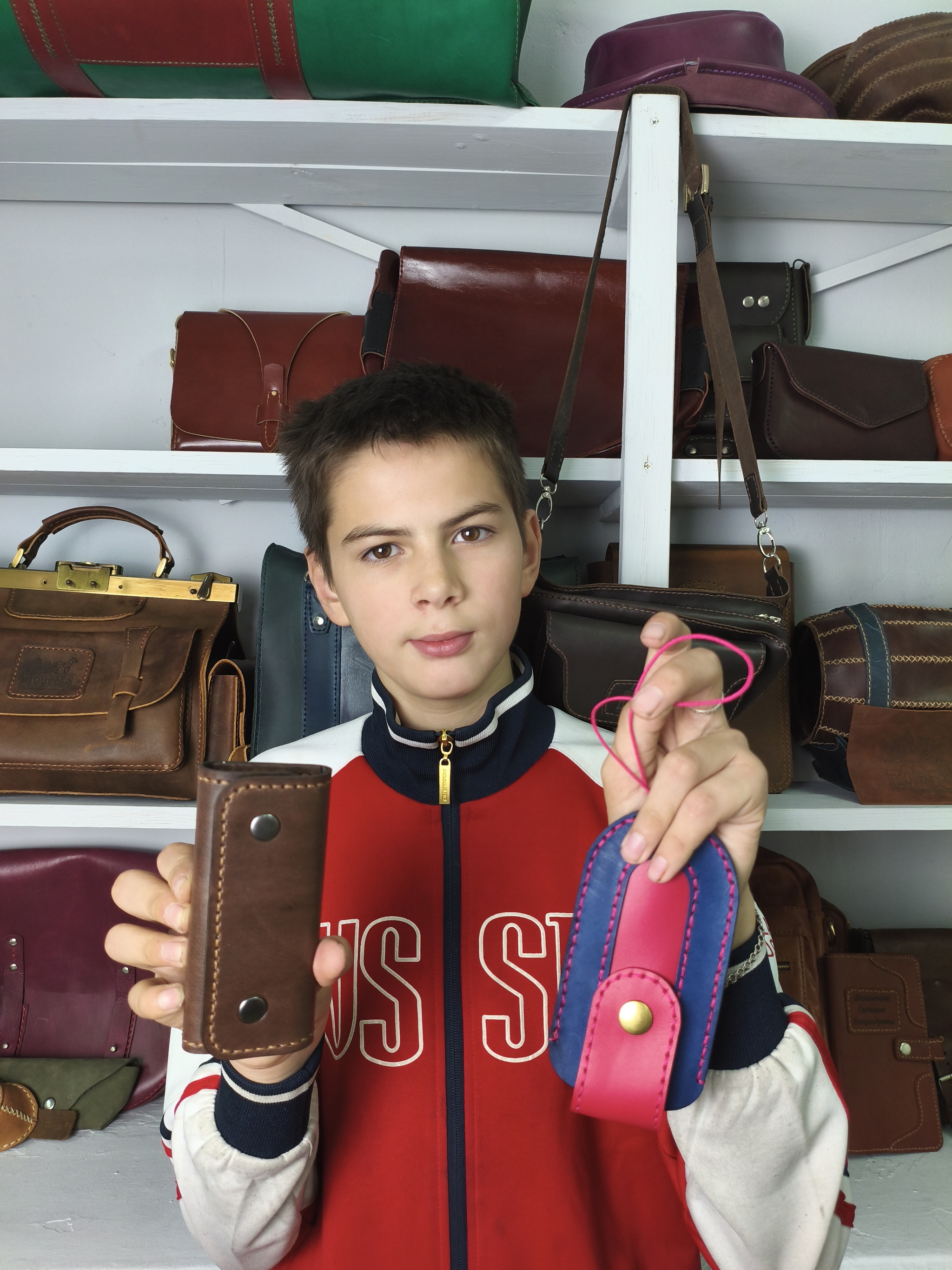 Именно из этих кусочков нубука (разного цвета) ещё юнный Роман делал свои первые изделия. Эх, помню как я ездил на промзону, из огромных тюков выбирал в отдельный мешочек такие вот кусочки побольше. Ещё ветер, дождь, прохладно. А денег не было, а там продавали эти обрезки по весу, дёшево было. Я по итогу за год оттуда мешков 14 вывез. Эх, ничего ещё не было, была только идея. Ни кабинета, ни инструмента, ни знаний. Мне нравилась сама мысль, что ребята смогут заниматься творчеством. И во что превратилось? Уже несколько десятков выпускников, сколько изделий и мастер- классов и не сосчитать. Уже шьём работы замечательные. Помню магию Пикабу☺️ когда десятки незнакомых людей отправляли инструмент и кожу просто поддержать. Какой путь проделан, а первая кожа вот, ещё лежит передо мной. Круто.