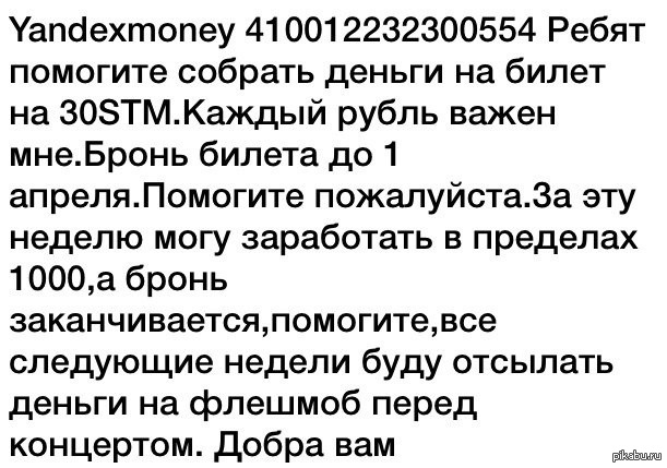 ChocolaD Пожалуйста, помогите. 11 лет назад Слезно прошу помощи у пикабушников, у эшелона, мы все семья! Мы - Пикабушники, и мы - эшелон. Помогите, пожалуйста. Стыдно что попрошайничаю, но денег нет.Добра [моё] 0 seconds to Mars Echelon Билеты Екб