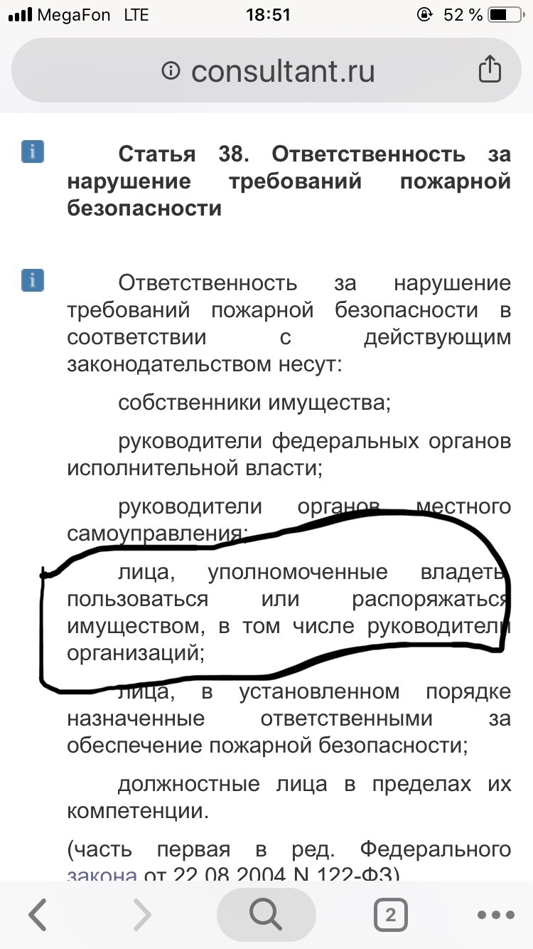 6. У меня на руках имеется копия об отказе в возбуждении уголовного дела по статье №168 УК РФ. В этом же постановлении написано следующее: "установлено, что причиной пожара послужил аварийный режим работы электрооборудования".