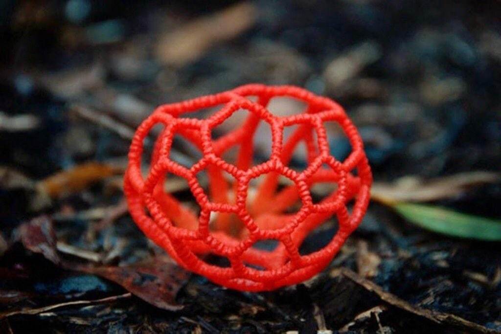 Появляется на свет в виде "яйца", состоящего из каркаса и белой пленки на нем, пленка лопается и остается красная решетка, которая воняет, привлекая мух. Они ползают по грибу, намазывая на себя слизь со спорами. Хочешь размножаться - будь привлекателен.