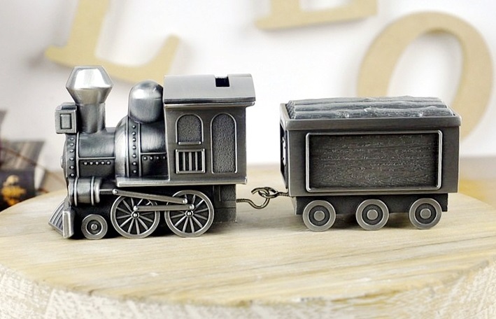 Симпатичный вариант сувенира для тех, кто не знает что подарить железнодорожнику. Металлический паровозик-копилка. Подойдет как для корпоративного презента, так и в домашнем обиходе сгодится: