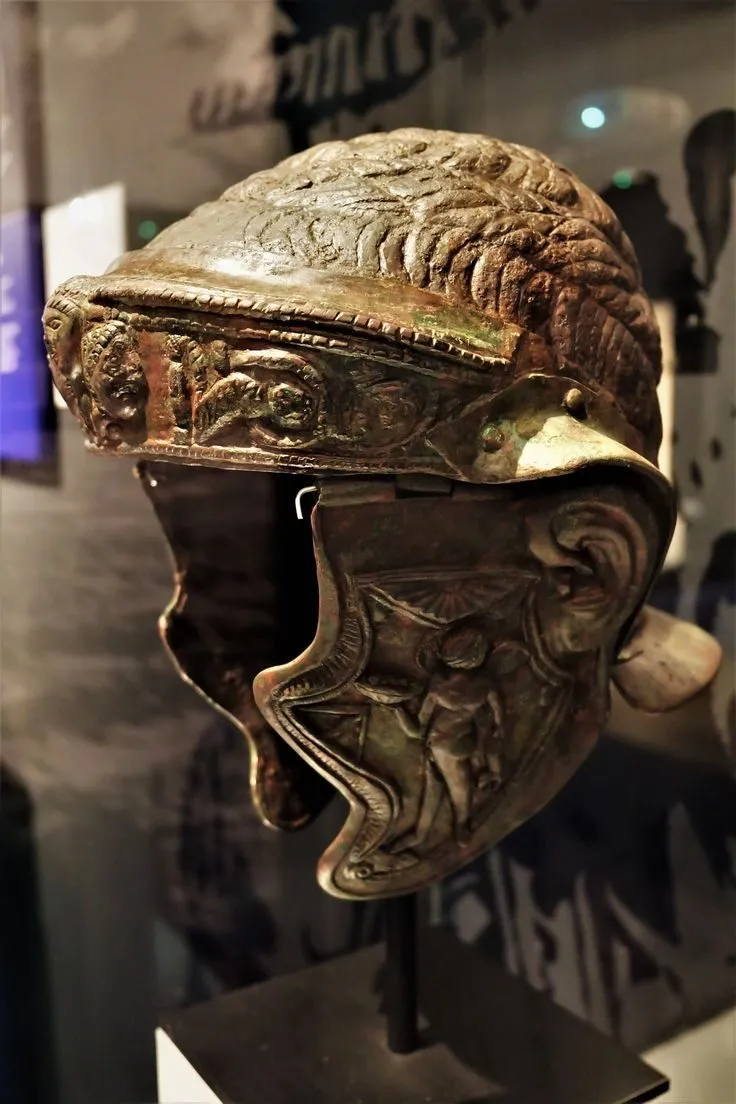 Этот парадный шлем, вероятно, принадлежал высокопоставленному офицеру римской кавалерии и использовался во время торжественных церемоний. Сегодня он является жемчужиной коллекции музея Валкхоф в Неймегене.
