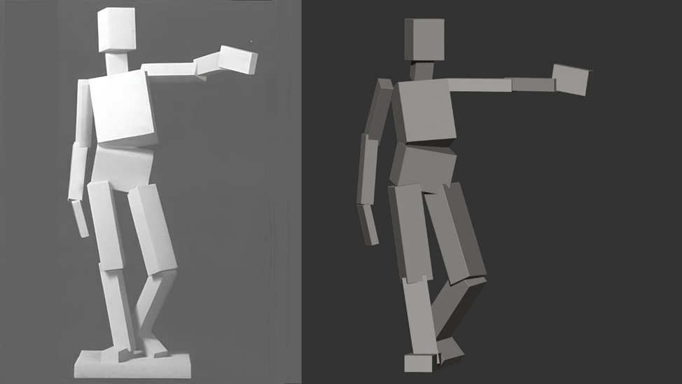 Здесь уже выбрал позу на примере персонажа и повторил кубами. Вот это мне уже нравится.