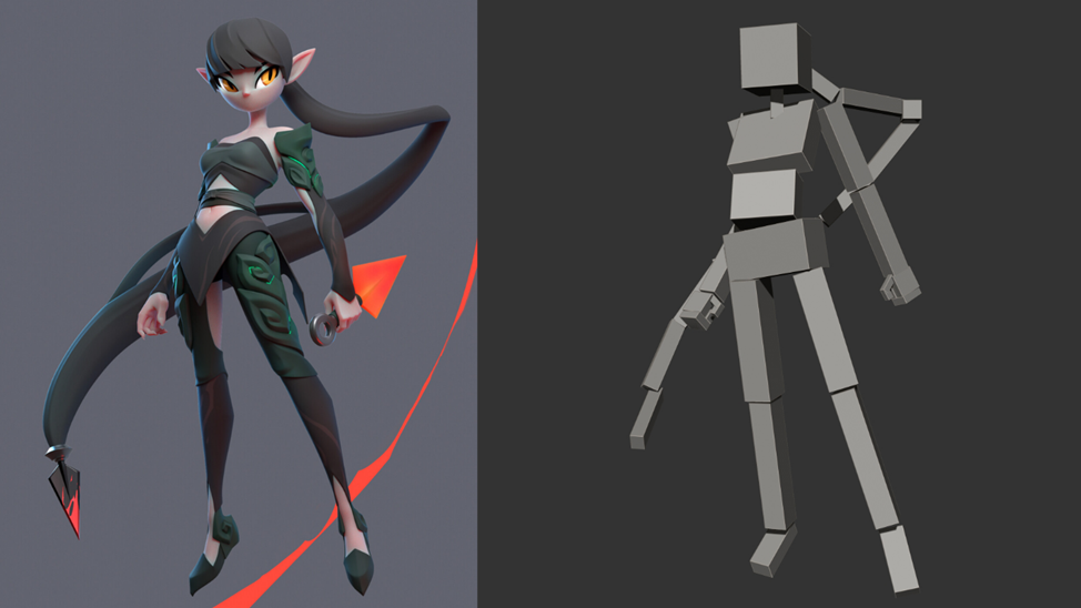 Попытка сделать персонажа в позе. Позже я понял, что не хочу так усложнять себе жизнь и остановился на этом.