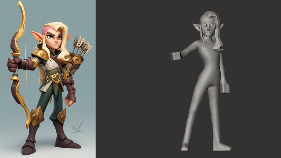 Здесь я начал делать персонажа в симметричной позе. Хотел доделать и поставить в нормальную, но он что-то меня выбесил.