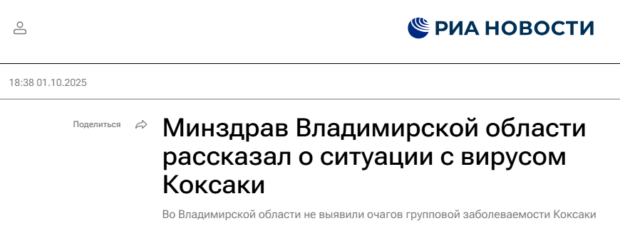 Во Владимирской области также не фиксируется вспышки заболевания. Согласно статистике, представленной минздравом региона, очагов массовой заболеваемости вирусом Коксаки не зарегистрировано, и она в разы меньше, чем годом ранее. Так, за 9 месяцев 2025 года на территории Владимирской области зафиксировано лабораторно подтвержденных 14 единичных случаев вируса Коксаки, а за аналогичный период в 2024 году было 49 случаев, констатировал минздрав региона.