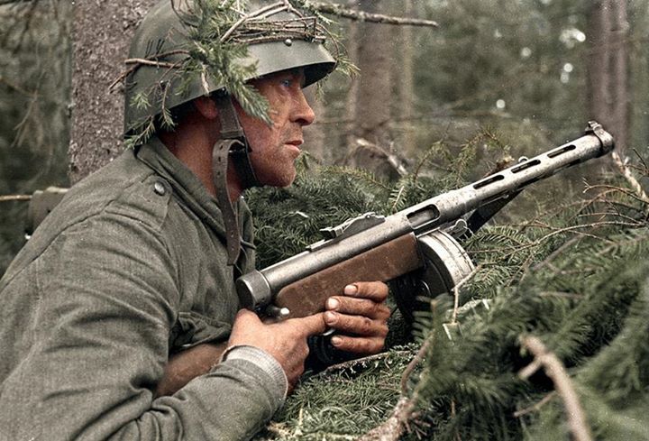 В боевых условиях ППШ проявил себя как простое, но эффективное оружие. Его массовость стала легендой — сотни тысяч автоматчиков шли с ним в атаку от Москвы до Берлина. Солдаты любили ППШ за мощь, удобство и надёжность. Немцы, захватывая трофейные экземпляры, часто оставляли их себе, переименовывая в MP.717(r). Их было выпущено более 6 млн. штук, в то время как «Суоми» - всего 80 000.