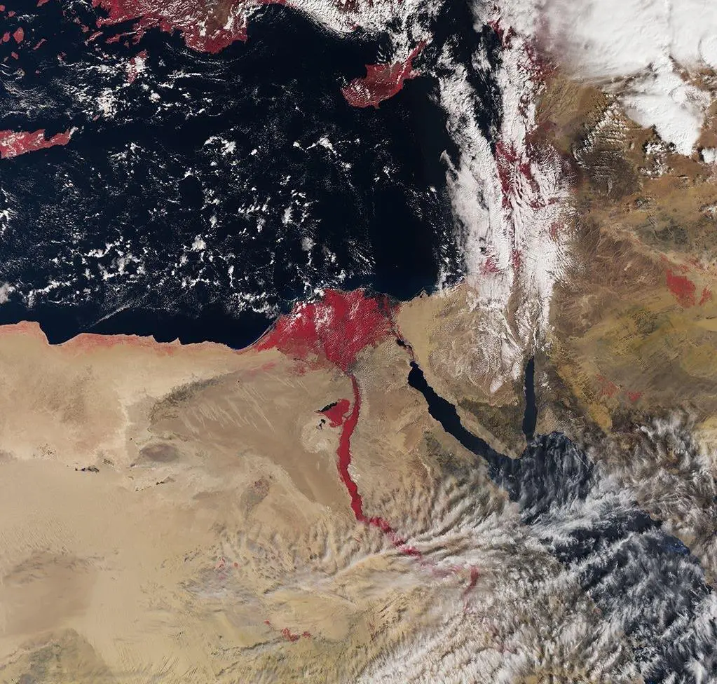 Что же касается снимка со спутника, на котором якобы видно, что вода во всём Ниле окрасилась в красный цвет, то с помощью поиска по изображениям Google удалось выяснить: фото отнюдь не новое — оно было сделано ещё в 2016 году спутником Европейского космического агентства Sentinel-3A. Тогда же само агентство, поделившееся снимком на своей странице в Facebook*, объясняло, почему Нил на изображении красный: так выглядит растительность, видимая в инфракрасном диапазоне радиометра спутника. Тогда, впрочем, некоторые впечатлительные пользователи также вспоминали о библейских пророчествах.