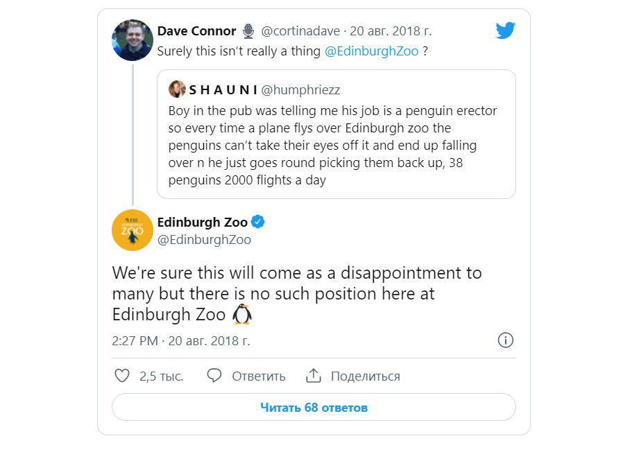 Итак, пингвинам не грозит смерть от опрокидывания, поэтому профессиональные переворачиватели и подниматели им не нужны. Это не более чем шутка британских пилотов, превратившаяся в городскую легенду, пересказанную широкой российской публике Михаилом Задорновым с подачи сайта «Крыльев.нет».