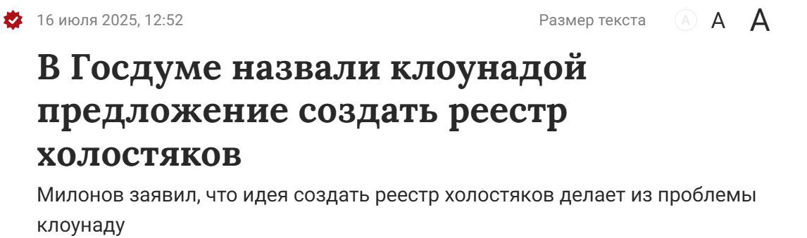 В СМИ и соцсетях время от времени обсуждаются инициативы, связанные с демографической политикой, включая возможные меры по поддержке семей или стимулированию браков, но о реестрах «неактивных холостяков» ранее не упоминалось.
