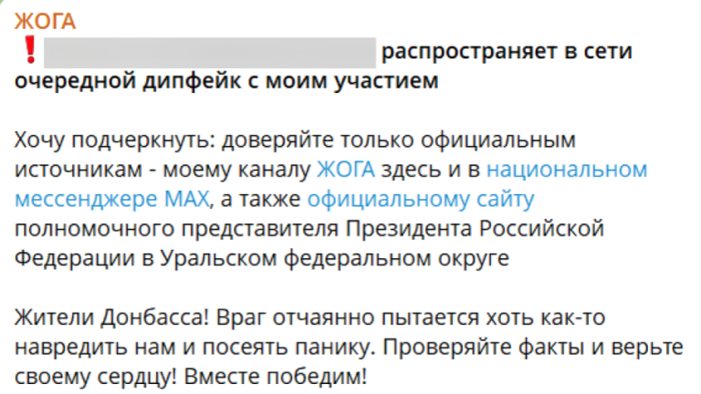 Это дипфейк, полпред президента России в Уральском федеральном округе подобных заявлений не делал. Травить жителей ДНР зараженной или грязной водой, естественно, никто не собирается.