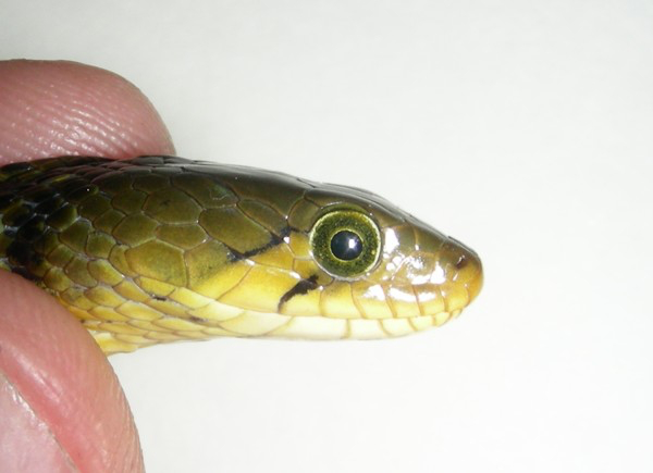 Помутневший глазной колпачок ужа перед самой линькой. Источник
