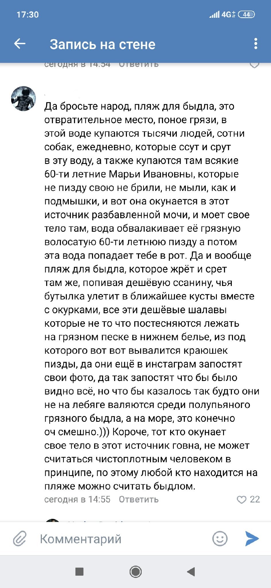deeEs Правда о пляжах 6 лет назад Из обсуждения пляжей в местном паблике.Лебяга - озеро "Лебяжье" в окрестностях Казани. автор - не я. Пляж Быдло Мусор Грязь Казань Мариванна Длиннопост Ещё 0