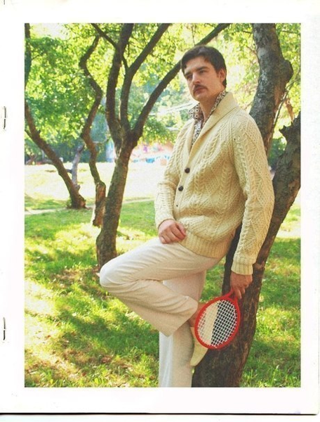 Брюки, штанины перекручены.