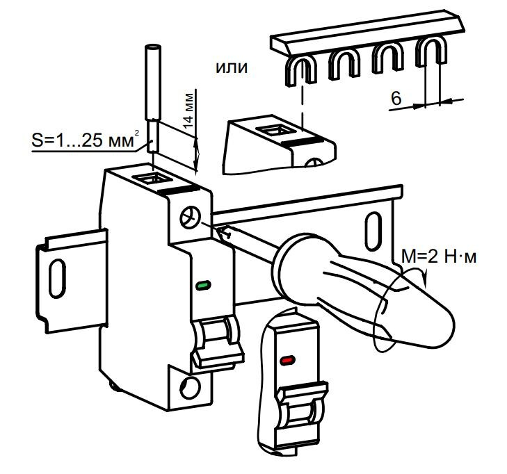 При соединении автоматических выключателей этой шиной контактное гнездо остаётся полностью свободным для подключения проводников с любым типом наконечника.