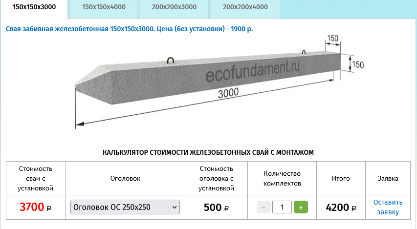 Итого 4200х16 = 67 200 рублей. Но это ещё не всё - тут цена за сваи и работу, но их нужно доставить, а также нужно доставить сваебой. Итого +30 000 рублей на доставку. 97 200 рублей за 16 свай с металлическими оголовками, забитых в пятно застройки.