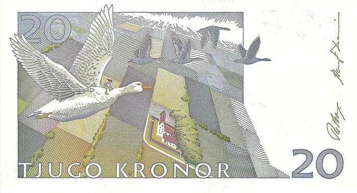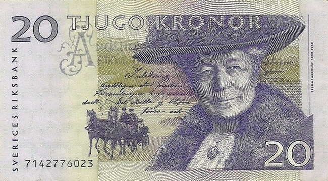 Шведы даже на банкноте в 20 крон, посвященной писательнице, разместили первые строчки ее романа «Сага о Йосте Берлинге».