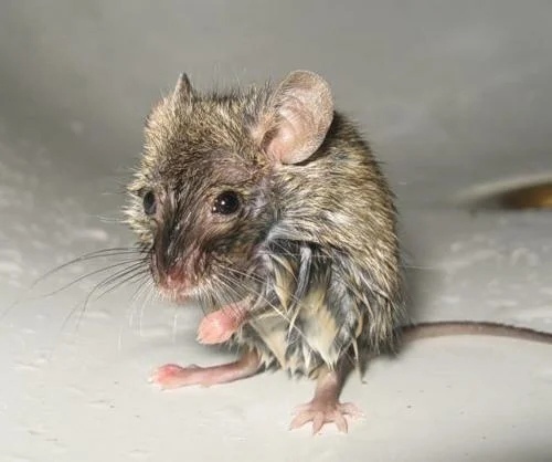 Войдя в свой подъезд, поняли - зачем. Наш дом сейчас находится в состоянии капитального ремонта, пару дней назад убрали деревянную внутреннюю дверь, везде лежат какие-то стройматериалы и ёмкости с различным содержимым, газеты, картон и прочие подручные вещи. И мы увидели, что в углу под лестницей к куску разорванной коробки прилип маленький мышь (по этическим соображениям фотографий делать не стали - фото из интернета).