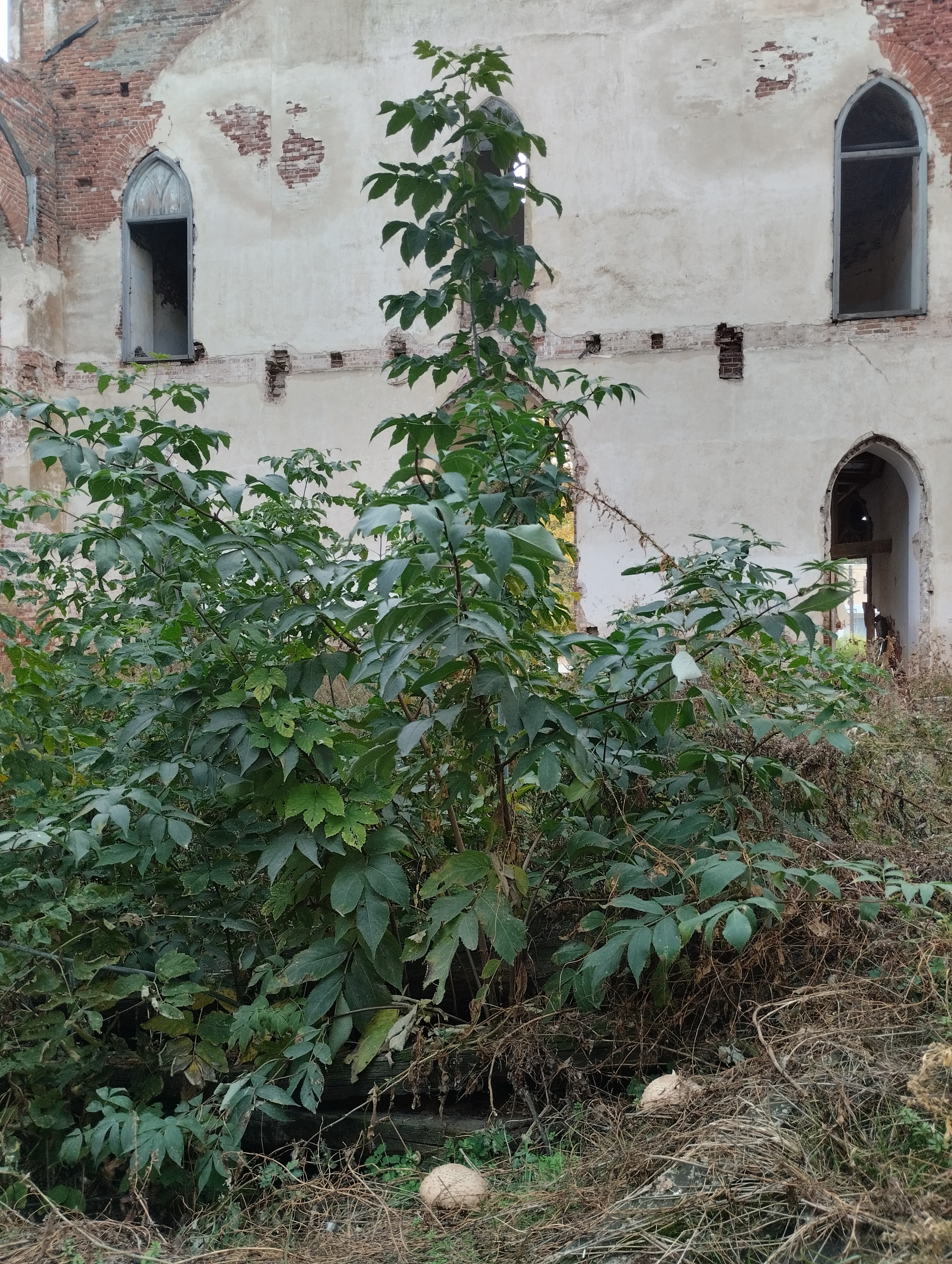 Грибы есть. Но собирать их внутри руин католической церкви рука не поднялась