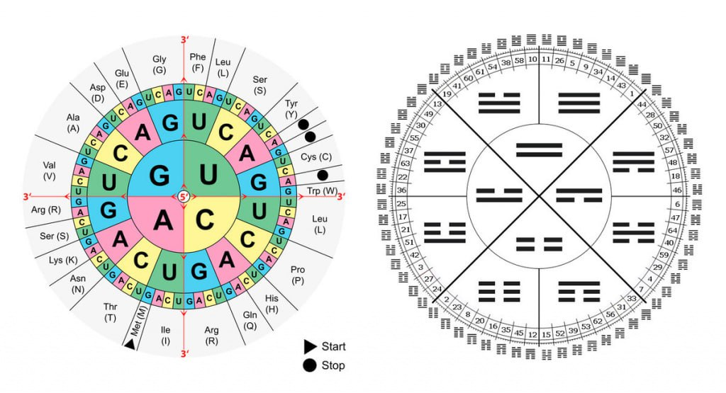 Круговые формы записи Генетического кода и Гексаграмм И-Цзин.