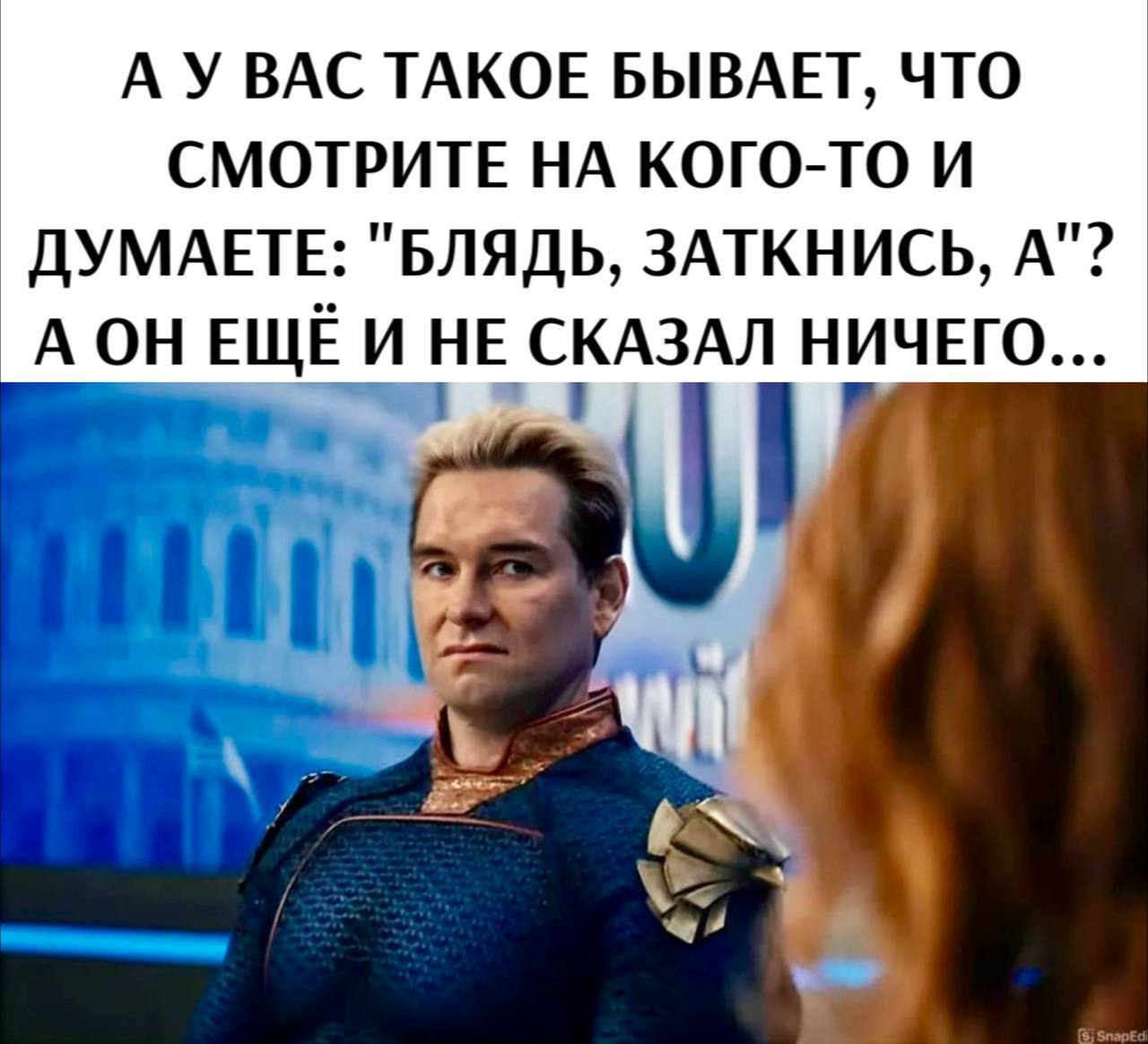 20 terebiata Мемы. Лучшее Предчуствие 10 из 10 7 месяцев назад Источник - https://t.me/roflemem/5660 Юмор Картинка с текстом Предчувствие Homelander (сериал Пацаны) Мемы Telegram (ссылка) 4 2 1 Ещё 0