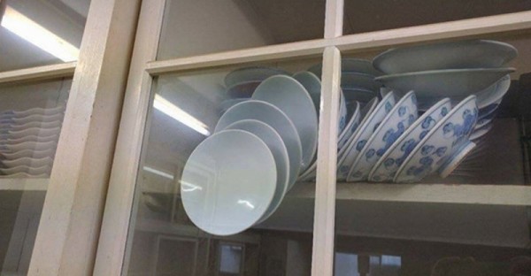 ... у шкафа отваливается задняя стенка и посуда сыпется туда... закон Мерфи )))