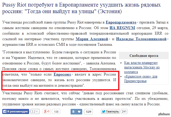 Предложение от Pussy Riot